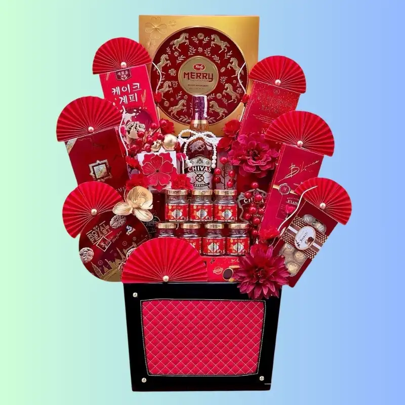 Khách hàng có thể linh hoạt lựa chọn hộp quà rượu ngoại riêng lẻ như Chivas 12, Chivas 18… hoặc các set quà kết hợp giữa rượu ngoại và bánh kẹo nhập khẩu. Mỗi cách chọn đều mang lại vẻ đẹp sang trọng và thể hiện sự trân trọng của người gửi trong dịp Tết.